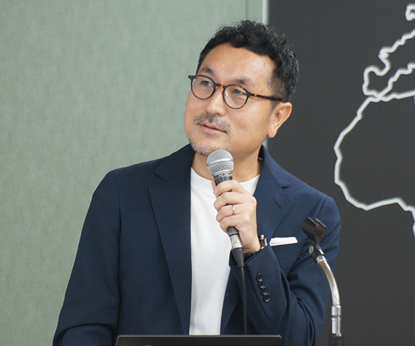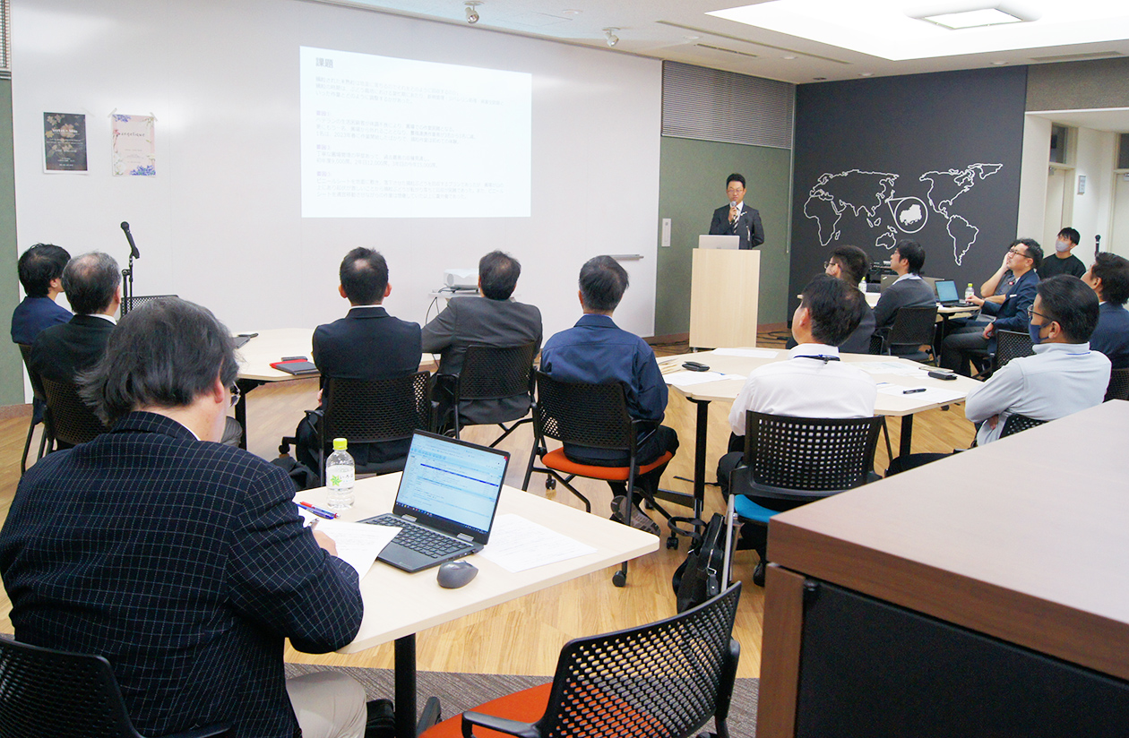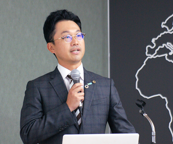 【事業報告①】 KGモーターズ株式会社 取締役 横山 文洋氏 小型自動車開発に取り組むKGモーターズ株式会社の取締役、横山文洋さんからは「モビリティの小型化による脱炭素社会の実現」について説明いただきました。現在は車移動の7割が10キロ未満で、さらに1人移動が7割という分析データから「移動が最適化された世界」を目指して、小型で環境負荷の少ないモビリティ開発に着手。人材や資金が必要になると予測し、早い段階から周囲の人が理解しやすい形で発信し続けることが大事と考えてユーチューブ動画で情報発信を継続。これが資金調達や人材採用に奏功したことなどを紹介いただきました。