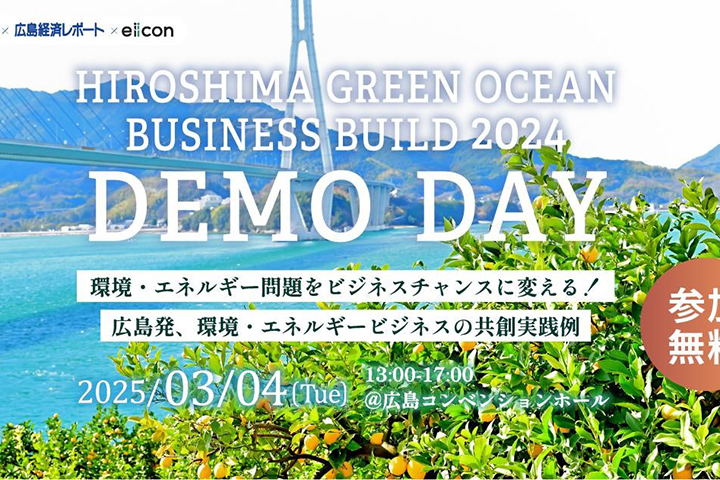 今年で2期目を迎えた『HIROSHIMA GREEN OCEAN BUSINESS BUILD』は環境・エネルギー分野における社会課題をビジネスチャンスに変え、広島県での新たな市場(グリーンオーシャン)の創出を目指しています。...