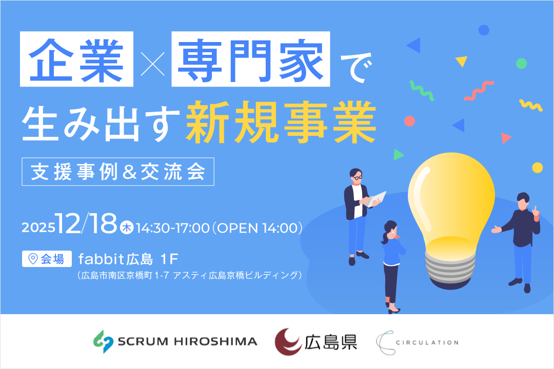SCRUM HIROSHIMAでは、専門家による新規事業への支援を行っています。